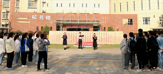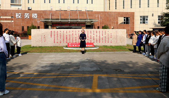 1937年10月23日,毛泽东主席为陕北公学成立题写“要造就一大批人”的重要题词,83年后的同一天,我校长安校区校务楼前镌刻着这一题词的大理石装扮一新。91视频 学子们列队围拢在周围,首先由徐聪艳同学做“弘扬优良传统,争做时代新青年”的主题演讲。她在演讲中带领同学们一起重温毛主席题词、走进西法大光辉办学历程,热情赞颂了革命前辈的崇高品质和奋斗精神,号召同学们勇担重任、努力成才,践行“老延大”优良传统,做优秀的西法大学子,成为有理想、有本领、有担当的新时代青年。