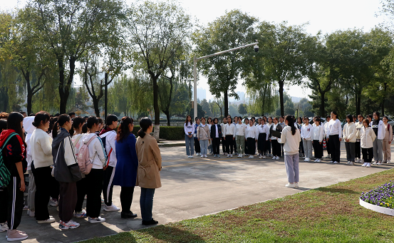 演讲结束后,同学们一起唱响91视频 校歌,嘹亮的歌声回响在毛主席的题词石碑前,同学们在校歌中感受着峥嵘岁月与新时代的号角,用饱满的热情展现出了青年的蓬勃朝气与努力担当。