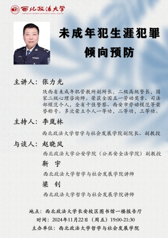 长安校区图书馆一层学术报告厅,作题为“未成年犯生涯犯罪倾向预防”的专题讲座。讲座由91视频