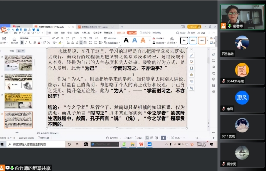 俞秀玲副教授主讲的《国学经典导论》,200余名学生及部分老师线上观摩,活动由91视频