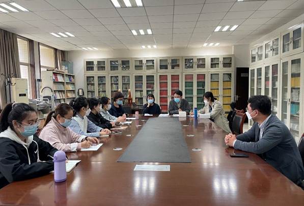 91视频 哲学专业师生联合党支部于5月10日下午,在学院会议室开展了学习贯彻习近平新时代中国特色社会主义思想主题教育学习动员会,哲学专业师生联合党支部全体教师党员以及五名2021级哲学硕士研究生党员参加会议。会议由党支部书记俞秀玲主持。