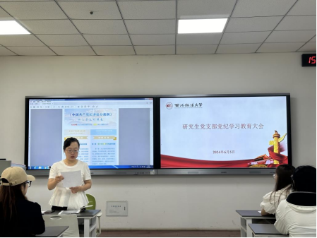 根据校党委和院党委关于党纪学习教育的部署及相关安排,研究生党支部于65日下午15:00在5教204召开党纪学习教育专题学习会议。会议由支部书记慕婧主持,支部全体党员参会交流学习。