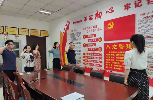 接下来全体与会党员在党旗下重温入党誓词,通过集体宣誓大家重温入党时的铮铮誓言和坚定决心,深刻体会作为共产党员的责任感和使命感。大家纷纷表示将身先士卒、履职尽责,积极发挥先锋模范作用,为推动学院、学校新发展积极贡献力量。