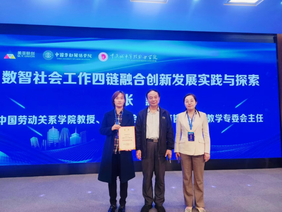 社会工作教研室主任任娟娟副教授、社会学教研室主任郑文副教授受邀代表学院参加了成立大会。经过与会各成员单位认真协商、审议,该大会通过了《全国智慧社会工作行业产教融合共同体章程》,确定了理事长单位、副理事长单位、常务理事单位、理事单位与会员单位。我校被授予常务理事单位。