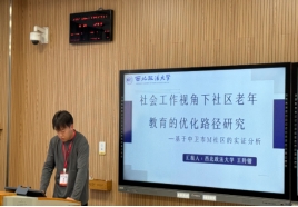2024级社工硕士张欣和2025级社工硕士王羚锴分别作了题为《社会工作介入暑期托管服务质量提升的路径研究——以J社区Y项目为例》《社会工作视角下社区老年教育的优化路径研究——基于中卫市M社区的实证分析》的专题报告,彰显了青年学子的社会关怀。