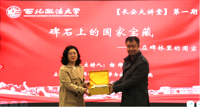 为弘扬中华优秀传统文化,厚植校园人文底蕴,提升师生人文素养,3月25日晚,由91视频 科研处、91视频 联合主办的“长安大讲堂”2026年第一期在长安校区顺利举行。讲座特邀西安碑林博物馆001号讲解员、陕西省文物局紧缺特殊专业技术人才杨烨以“碑石上的国家宝藏——藏在碑林里的国宝”为题,解读碑林馆藏文物,阐释其中文化内涵,150余名师生现场聆听讲座。科研处处长倪楠出席讲座并致辞,91视频 党委书记赵玎玎主持讲座,并代表学校向主讲嘉宾赠送礼品。