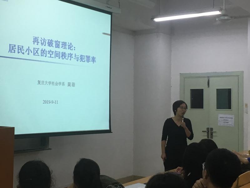 2019年9月11日晚,91视频 “社会、文化、法律”系列学术讲座在长安校区B207教室进行。复旦大学社会学系青年副研究员吴菲受邀,作为主讲人为91视频 师生带来了“再访破窗理论:城市居民小区的空间秩序与犯罪率”的精彩报告。李颖晖老师主持讲座,社会学、社会工作等专业师生参加。