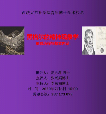 本次学术沙龙的主题是“黑格尔的精神现象学——形成历程与基本内涵”。姜勇君博士在报告中指出:黑格尔的《精神现象学》是西方哲学最重要的经典之一。然而,这是一部谜一般的著作,不仅仅其内容神秘莫测,而且后人对它的形成过程、整体结构以及它在黑格尔整个体系中的位置等等问题争论不休。Theodor Haering对这部著作的语文学研究让人印象深刻,他指出这部著作缘起于黑格尔一个相当突然的决定,它是在非常短的时间内完成的,而且内容和全书的体量随着排印不断变化。Otto PögglerTheodor Haering的反驳同样令人印象深刻。Pöggler令人信服的反驳了Haering的大部分观点,但他也同意这部书的原初计划随着写作的深入而发生变化,他认为“意识经验的科学”在前三章就已经结束,而从第四章开始就进入了“精神现象学”。就黑格尔哲学而言,这部书与成熟时期的著作相比可能显得有些“稚嫩”,但这并不妨碍它成为黑格尔最有影响力的著作。在这部著作中,黑格尔对自我意识的讨论启发了后世很多有影响的哲学家。黑格尔认为,我们不能在个别意识范围内讨论自我意识,因为自我意识不是“我”内部的事情,而是“我们”之间的事情。