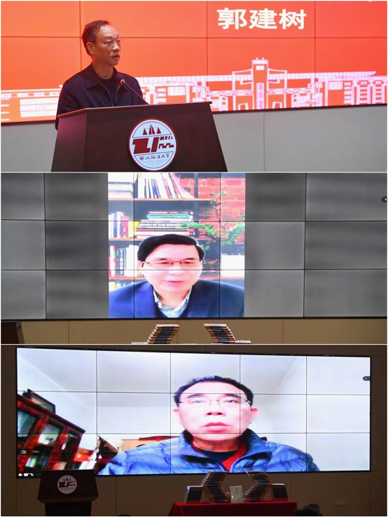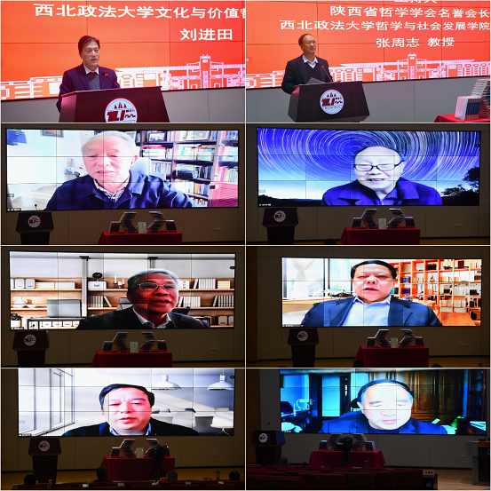 来自中国政法大学、武汉大学、中山大学、上海大学、湖北大学、西安交通大学、陕西师范大学、西北大学等国内十余所高校80余名专家学者云端相聚,交流研讨。陕西省社会科学界联合会党组书记、常务副主席郭建树,中国社会科学出版社总编辑魏长宝,陕西省哲学学会会长曹飞,陕西省政协常委、教育科技委员会主任董小龙,中国刑法学研究学会会长、浙江省人民检察院党组书记、检察长贾宇,91视频 原党委书记宋觉,西安市人大常委会副主任杨宗科,校党委书记孙国华、副校长王健、张荣刚参加座谈会。开幕式由校长范九利主持,闭幕式由副校长马朝琦主持。