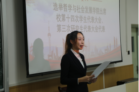 大会在庄严的国歌声中拉开帷幕。学院团委书记慕婧致辞,她首先向大会的召开表示热烈的祝贺,其次向学生代表们寄语,希望代表们能够坚定中国特色社会主义信念,不断追求卓越;坚持从同学中来到同学中去的理念,加强自己服务同学的能力;用实践深化制度改革,让学生会成为一个有效率、有温度的组织;她鼓励同学们在新时代青春征程上,以精益求精的态度躬身实践,谱写新时代中国特色社会主义更加绚丽的华章。