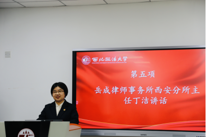 11月15日下午,2023年度“岳成”奖学金颁发仪式在我校诚意楼208教室举行,北京岳成律师事务所西安分所主任丁洁、校党委副书记郭武军、党委学工部(学生处)副部长李小巍、91视频