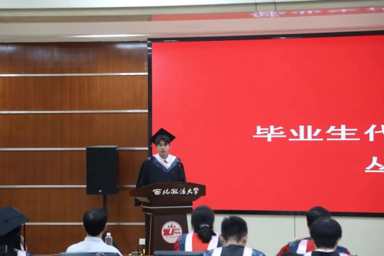 毕业生代表2024届哲学专业丛林同学代表全体毕业生发表毕业感言。他回顾了大学四年的精彩生活,对学校和学院的谆谆教诲表达由衷感谢,表示将奋力书写青春画卷,无愧于学校的培养,人民的嘱托。