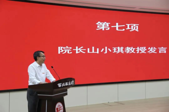 院长山小琪教授致辞。山院长代表学校向圆满完成学业的同学们表示热烈的祝贺,并对学生们提出了殷切期望,希望同学们能够始终树立远大志向,谨遵师长教诲,永葆奋斗精神,自觉将自身投入于社会发展新时代中,以青春力量践行奋斗,努力书写无愧于时代和人民的青春篇章。