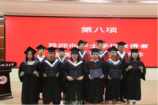 导师为学士学位获得者颁发学位证。随着激扬的音乐,毕业生依次上台,学院导师为他们颁发学位证书,正冠拨穗,送上亲切祝福,并合影留念。