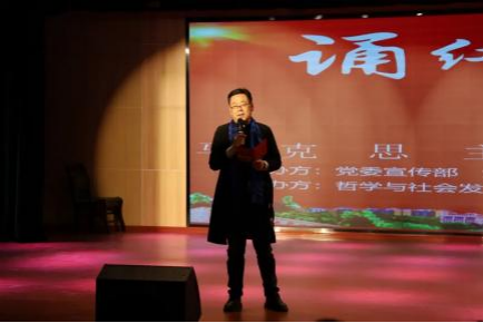 团委和马克思主义学社承办的“诵红色经典·育时代新人”第四届马克思主义经典诵读大赛决赛于11月29日晚在长安校区AJ33举行。校党委副书记郭武军出席活动,马克思主义学院魏奇教授等担任大赛评委,各主办单位领导及各学院学生工作负责人、社团学生代表、家长代表等近四百人观看了比赛。