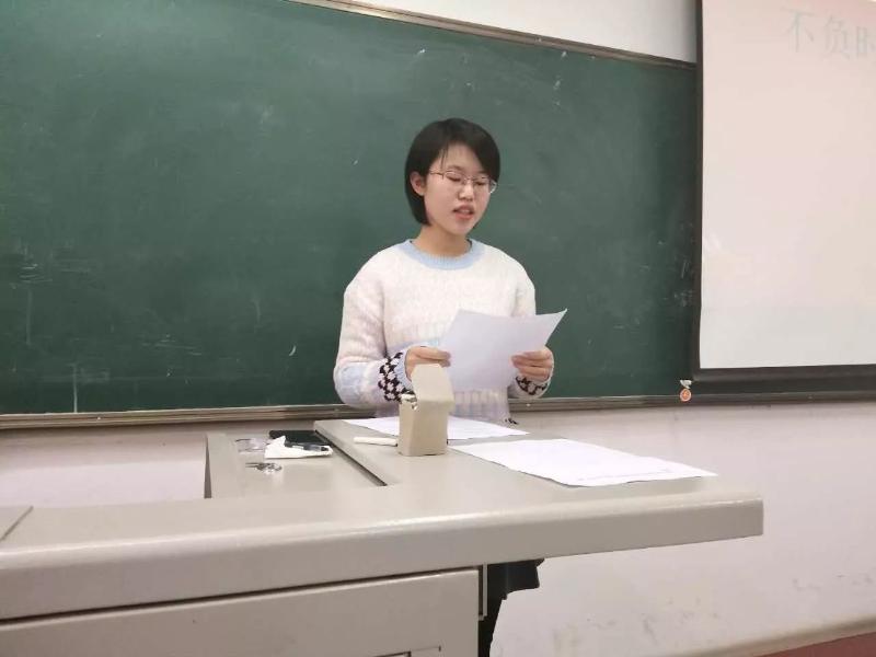 紧接着,四名学生代表为大家朗读了习近平总书记知青岁月的相关资料,引导同学们学习习近平总书记坚韧不拔、吃苦耐劳、永不服输的优良品格和踏实沉稳的学习态度。之后,团员代表们进行了发言,他们号召大家要坚定理想信念,深刻领会十九大精神内涵,学以致用,在实践中不断提升自我;并且要自觉树立担当意识,争做时代发展的先锋!