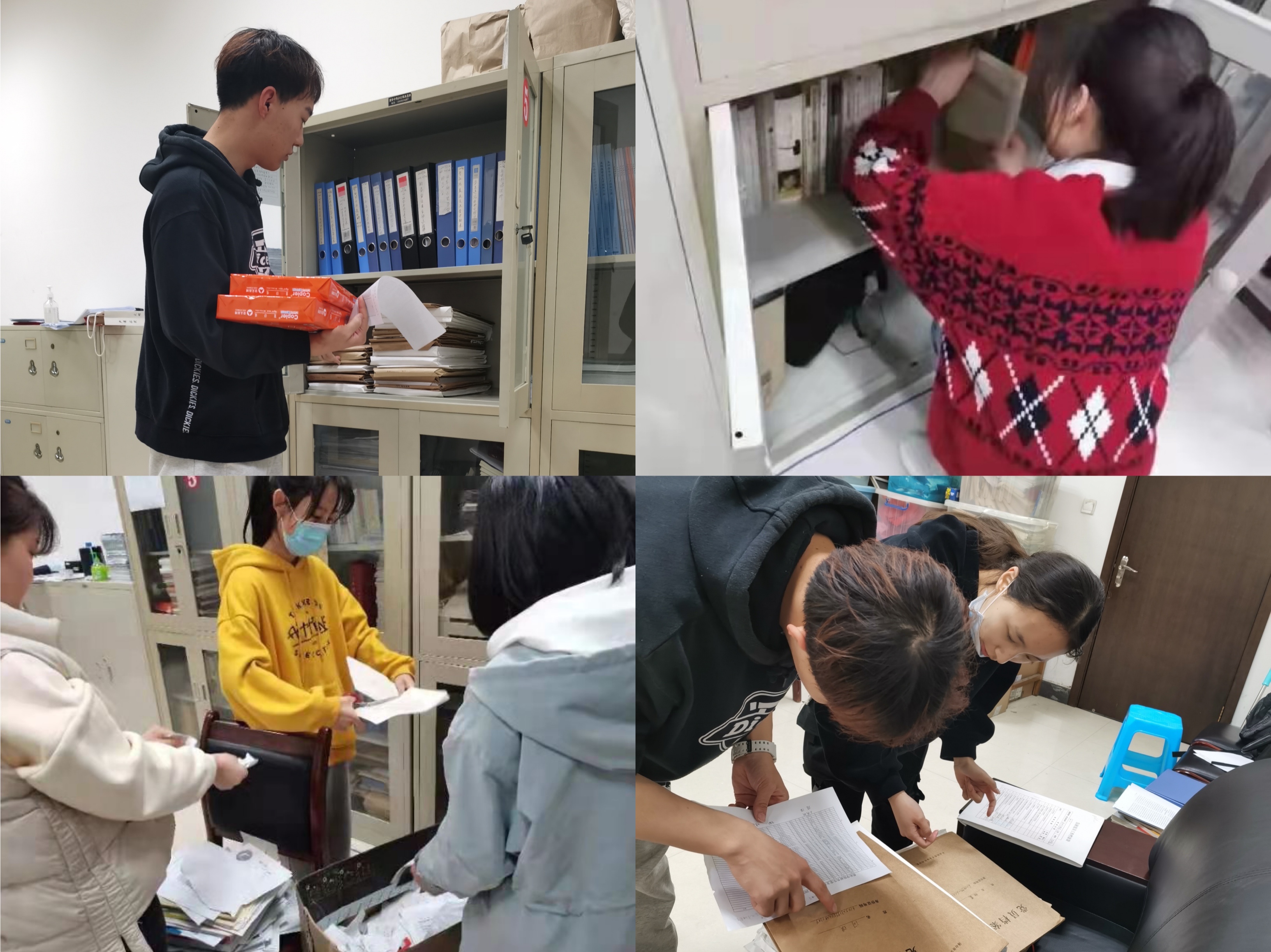 资料整理 由于时间久远,2009年以来学院留存的各类学生资料、文档、书籍存在门类混杂、积灰严重等问题。了解到这一情况后,2020级各班组织志愿者自发以上材料进行分类、归纳、清理。