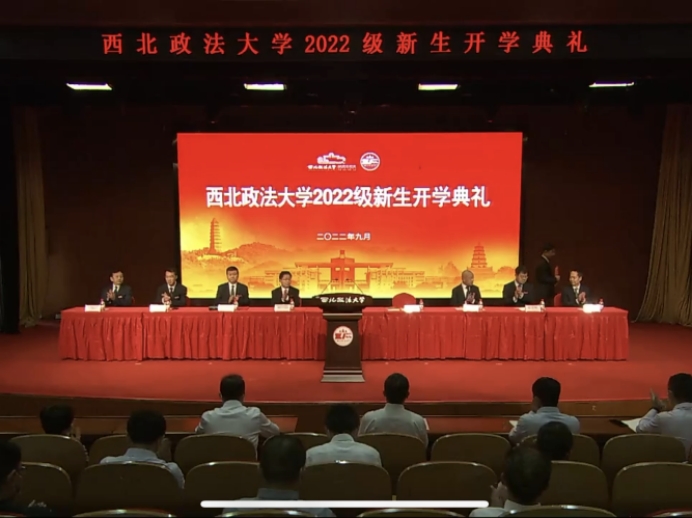 校领导为新生代表佩戴校徽。全体同学起立,佩戴校徽。这枚徽章承载着西法大人的光荣与使命,是一份荣耀,更是一份担当。