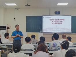 在导师寄语环节,院长山小琪教授对新同学的到来表示真挚而热烈的欢迎,希望新生能够尽快适应新的环境,合理规划自己的学习与生活,鼓励同学们抓住机会、磨练自己,学会自由、珍惜当下,不断进步、不断成长;中国哲学导师组组长李明教授强调在研究生阶段要做到安心向学、悉心规划、清心读书、仁心立己、大心待人、小心做事、明心处世、热心未来,勉励同学们在学习过程中要加强自身研究的认识和思考,拓宽研究思路;马克思主义哲学导师组组长何小勇教授从学习方法、学习习惯养成等多个方面出发,向同学们讲述培养独立思考和创新能力的重要性和必要性,鼓励同学们只争朝夕,不负韶华,努力创造自己的人生价值。其他导师张波教授、俞秀玲副教授、李智福副教授、王琼副教授、王荣虎博士、张兴娟博士、赵精兵博士也分别就各自的治学经验对2023级新生给予了专业性的建议和殷切期望。