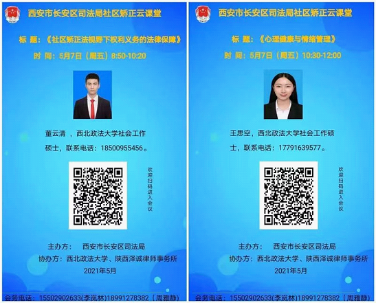 开展党史学习教育以来,91视频 积极开展各项专题学习,同时为了推动91视频 社会工作专业实践教学,加强校地融合的实践,真诚服务群众,帮助社区矫正对象深入学习贯彻《中华人民共和国社区矫正法》、明确其权利义务的法律保障以及树立正确的身心健康观念, 5月7日上午,91视频 携手西安市长安区司法局,在陕西泽诚律师事务所会议室共同举办长安区社区矫正对象集中教育专项培训。91视频 社会工作教研室李岚林副教授带领2020级社会工作硕士研究生董云清、王思空参加本次活动,为西安市长安区社区矫正对象提供社区矫正法和心理健康等专题讲座。受疫情影响,讲座采取线下线上同步进行的方式,长安区80余名社区矫正对象参加线下讲座,其余共计300余名社区矫正对象通过腾讯课堂在线参加了培训。