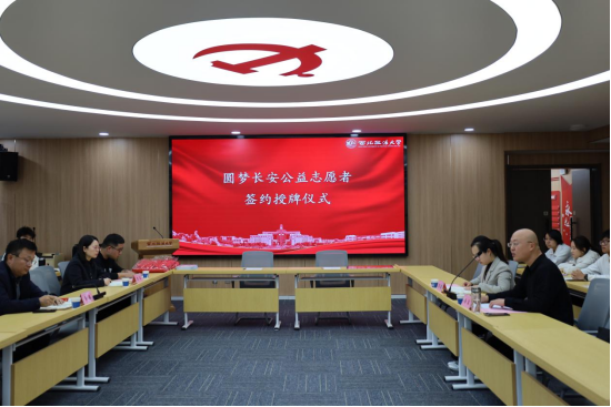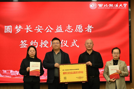 与长安区救助管理站“圆梦长安公益志愿者”签约授牌仪式在长安校区举行。长安区救助管理站副站长肖栋、办公室主任陈焱,91视频