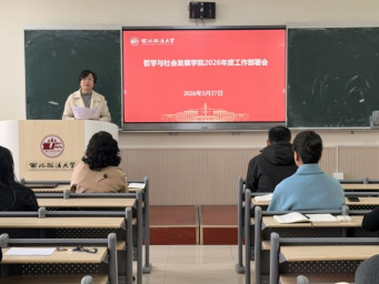 学院党委书记赵玎玎回顾2025年党建和思想政治工作成效,系统部署了2026年党建重点任务。要深入开展树立和践行正确政绩观学习教育,扎实推进习近平新时代中国特色社会主义思想进课堂、进教材、进头脑,深入学习贯彻党的二十届四中全会精神和全国两会精神,科学制定学院“十五五”发展规划。要以党建“双创”为抓手,加强分类指导,进一步强化基层党组织政治功能和组织功能,充分发挥党建引领作用,推动党建与教学、科研、管理等工作深度融合。要压实全面从严治党责任,加强党风廉政建设,以党风强作风,以教风带学风,营造风清气正的发展氛围。面临专业结构优化调整、学科建设提质升级等现实挑战,以及社会工作专业建设、人文通识课程建设等发展机遇,全院上下要进一步统一思想、坚定信心、团结奋斗,主动抢抓机遇、勇于攻坚克难,凝聚全体师生智慧力量,在迎接挑战中寻求突破,在把握机遇中推动学院内涵式发展。