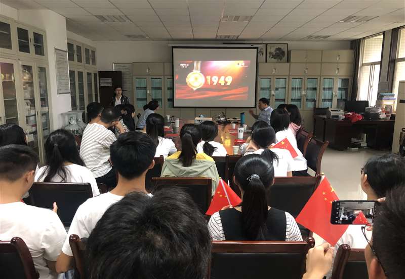 今天是祖国70华诞,神州大地红旗飘扬、万众欢腾。当庄严的国歌奏起,在场所有师生自觉起立,凝视屏幕,齐声共唱《义勇军进行曲》。70年来,中国人民从积贫积弱迈向繁荣富强,创造一个又一个伟大奇迹。正如习近平总书记指出“中国的昨天已经写在人类的史册上,中国的今天正在亿万人民手中创造,中国的明天必将更加美好。”