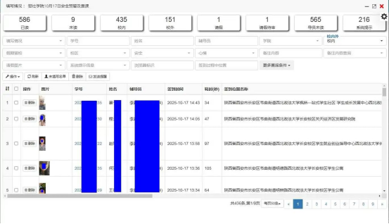 为确保安全教育工作落地见效,学院对全体在籍学生开展了全覆盖式排查与提醒。据统计,学院共有在籍学生595人,截至10月17日,所有学生均已查阅学院发布的预警通知及安全要求,实现信息触达率100%。